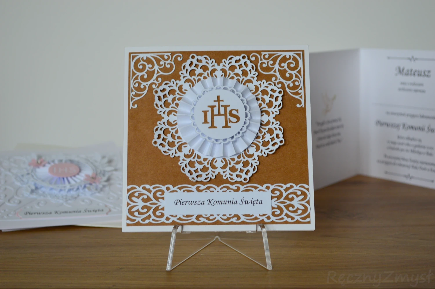 Materiały: Stosujemy wyłącznie wysokiej jakości fakturowany papier ozdobny 250g biały lub ecru, który dodaje teksturę i elegancję.