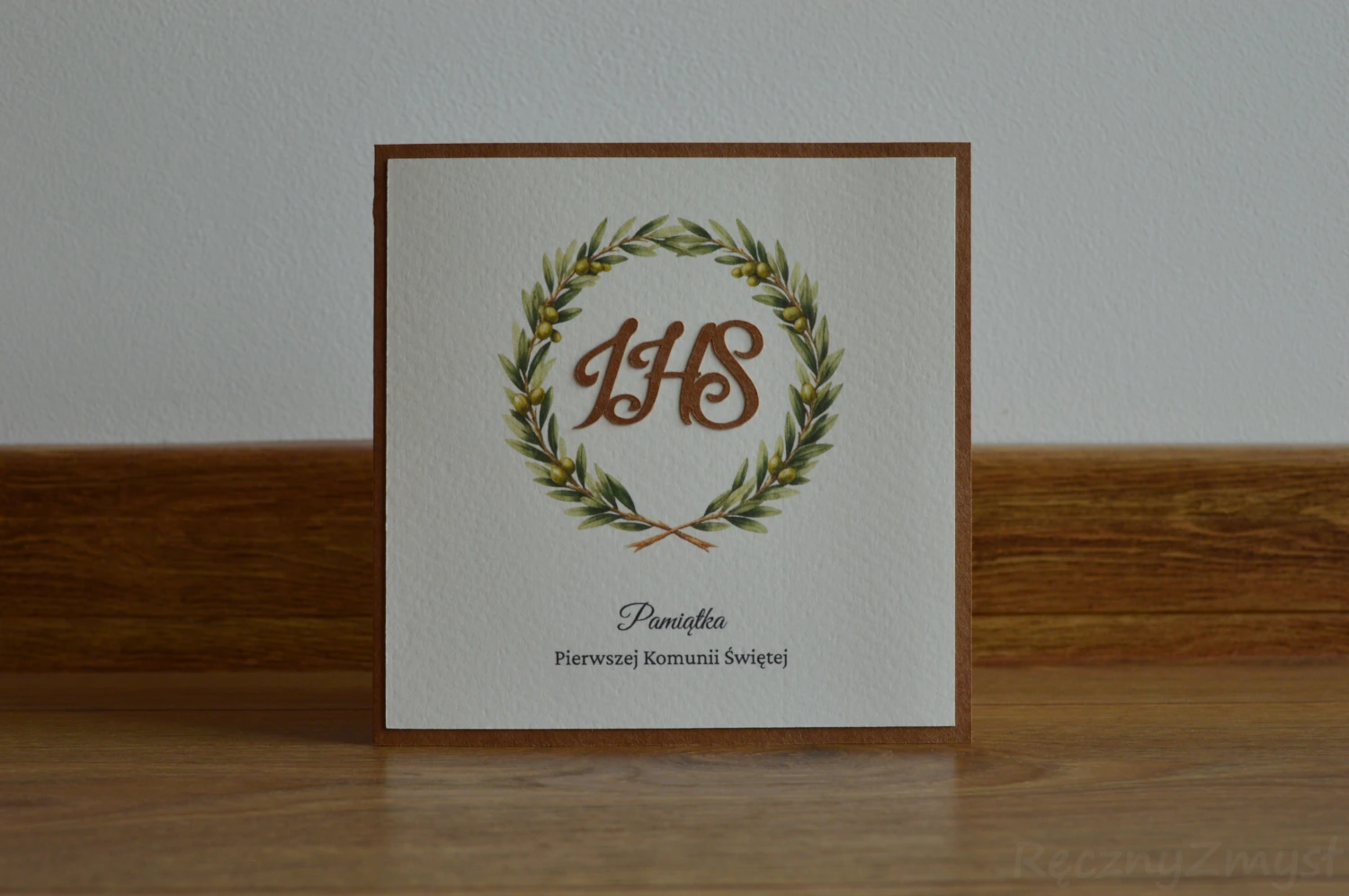Pamiątka Komunia - Wianek oliwny z IHSPamiątka Komunia – Wianek oliwny z IHS